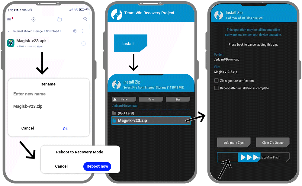 Magisk.zip Jika file berupa .apk silahkan rename/ubah menjadi .zip.